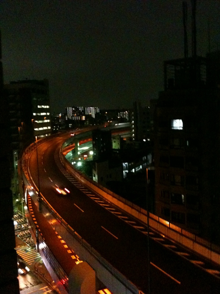 自宅の窓から見た夜景(高速道路)
