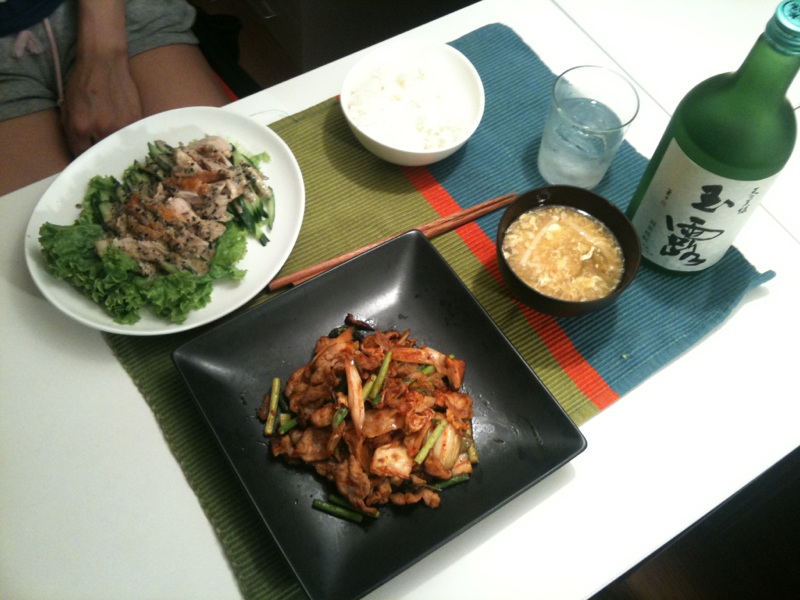 蒸し鶏(正確には茹で鶏)とアスパラのサラダ